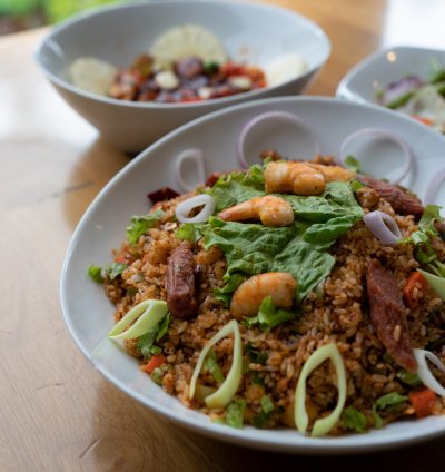Our kitchen serves authentic Sri Lankan food, including vegetarian, seafood, and meat options, using fresh farm grown ingredients.